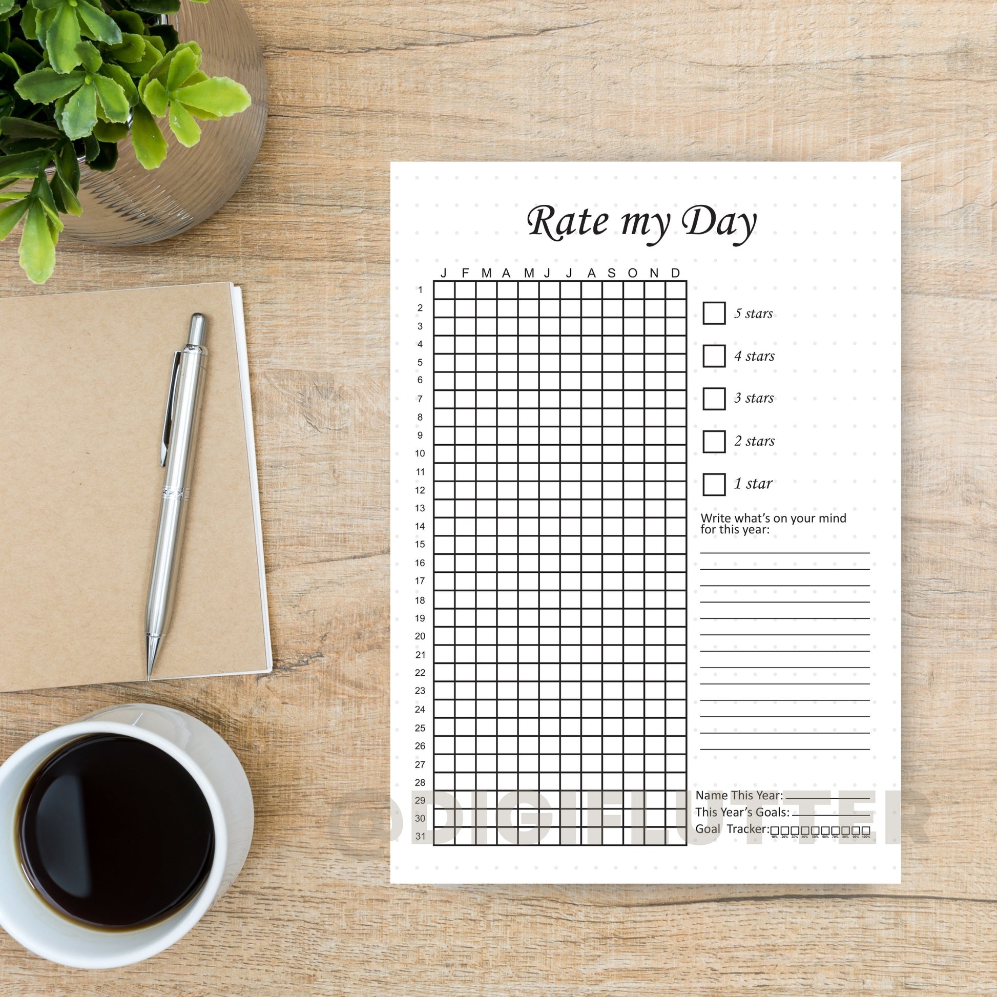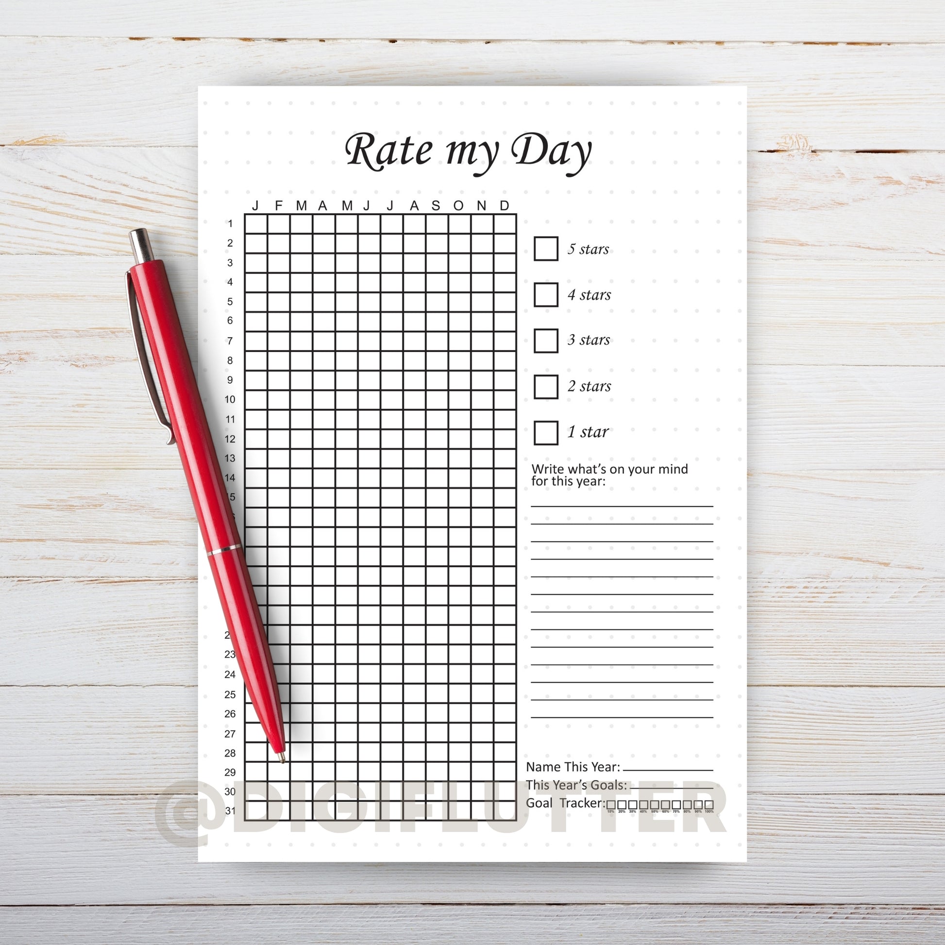 Rate My Day - Printable Daily Journal Page | Mood & Day Rating Tracker | Year in Pixels | Monthly Mood Tracker | Planner Insert