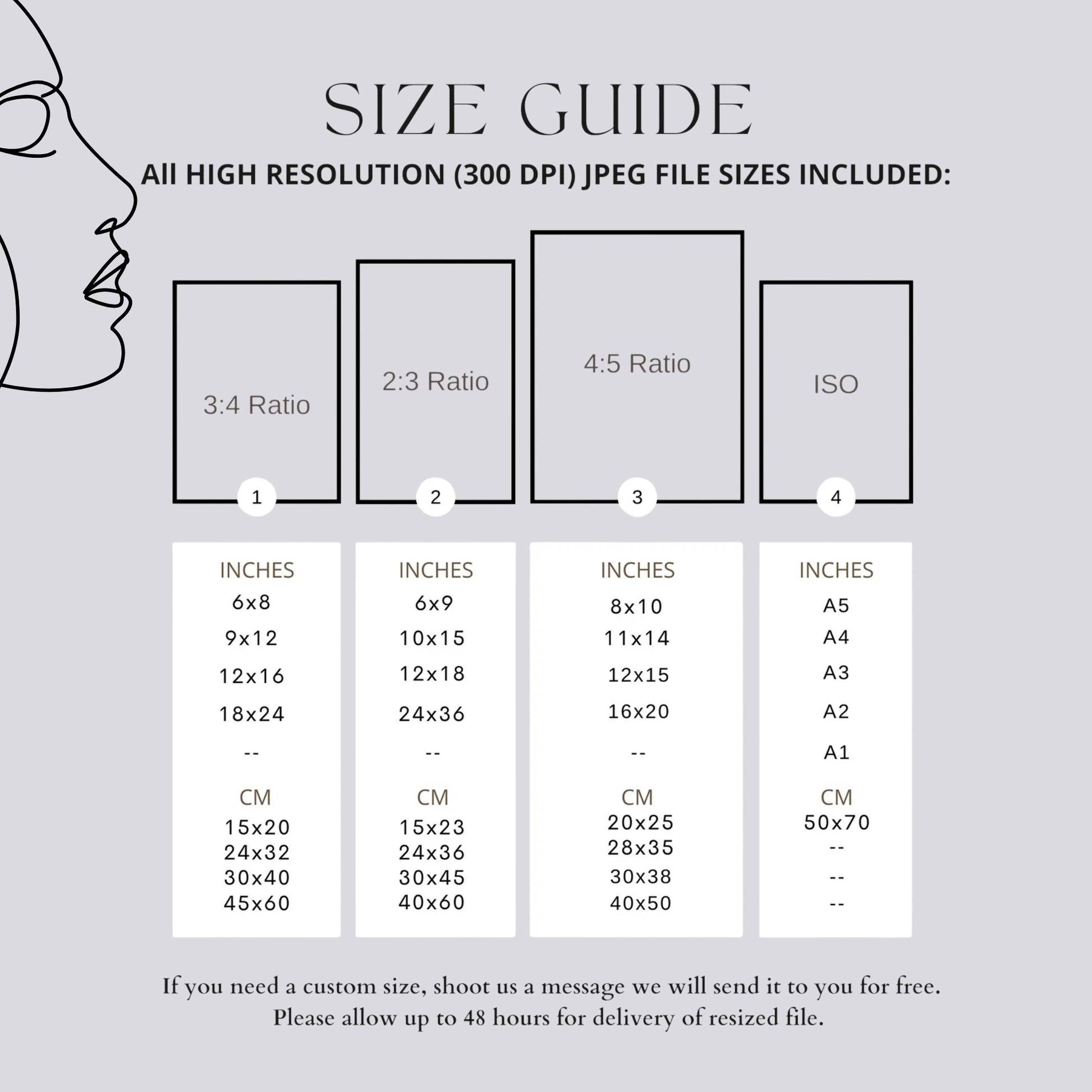 You’ll receive 3 high-resolution digital art prints, each provided in 5 standard aspect ratios (JPG + PDF), so you can print them in a variety of frame sizes easily at home or through a print shop.